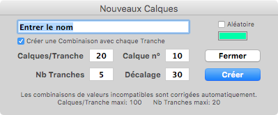 Pour crŽer des nouveaux calques ou des tranches de calques, ˆ des positions dŽterminŽes disponibles, cliquer dans le bouton Ç Nouveaux È. Le dialogue de CrŽation est affichŽ. Voir ici son utilisation au paragraphe 6.
