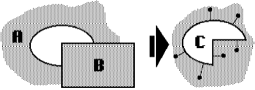 Soit C l'objet rŽsultant d'une opŽration entre deux objets A et B. L'opŽrateur boolŽen de 3D Turbo comporte 10 opŽrations :